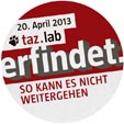 Am 20. April 2013 findet das taz.lab im Haus der Kulturen der Welt in Berlin statt. Das taz.lab steht unter dem Motto: "Erfindet. So kann es nicht weitergehen". Ein politisch-kulturelles Forum - gegen das "Anything goes" Lesen Sie mehr.