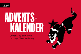 Vom 1.–24. Dezember öffnet die taz täglich ein Adventstürchen mit exklusiven Verlosungen und Blicken hinter die Kulissen – jetzt schon den 1. Dezember im Kalender markieren!