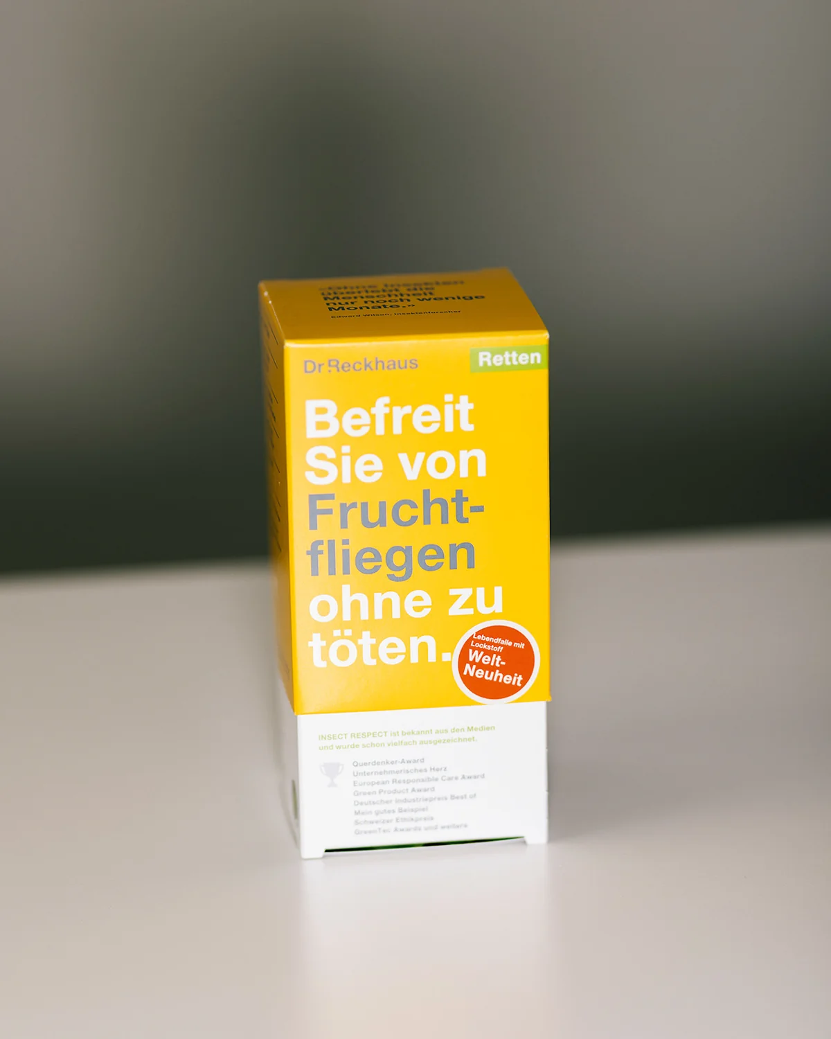 Schauen Sie, wenn wir zu dritt als kleine NGO so ein bisschen für die Insekten kämpfen, dann kommen wir nicht an die Oberfläche. Ich bin nur ein kleiner Mittelständler, aber da ich mit Aldi, Rossmann, all diesen Unternehmen arbeite, bin ich oben. Ich sage denen: Leute, ihr könnt mein Gütesiegel haben, aber nur mit Warnhinweis. Die großen Kunden sind leider nicht so radikal, dass sie den erwähnten Warnhinweis umsetzen. Aber: Auf jeder Packung der Großen steht drauf: »Lesen Sie die Präventionstipps. Ziel ist, das in Zukunft weniger Bekämpfungsprodukte eingesetzt werden.« Letztes Jahr haben 4,5 Millionen Packungen das Insect-Respect-Gütesiegel getragen. Tötungsprodukte. Ich finde das richtig klasse, weil meine Tötungsprodukte wehtun. Und so bringe ich den Markt nach unten.