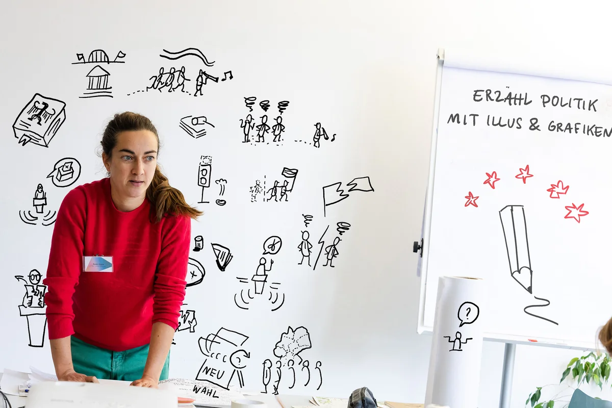 Bei den Jugendmedientagen YouMeCon bildet die taz Panter Stiftung Nachwuchsjournalist:innen im Umgang mit Illustration und Grafik im Politikjournalismus fort.
