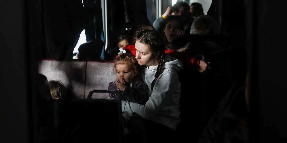Я видел как у людей были слёзы на лице, кто по поводу войны, кто по поводу близких. Со временем слёзы впитывались или размазывались по лицу. Взгляд страха, взгляд изнеможения, взгляд безысходности. Но это взгляд у женщин, которые с детьми и без мужчин, у женщин с питомцами. Рядом со мной была семья.