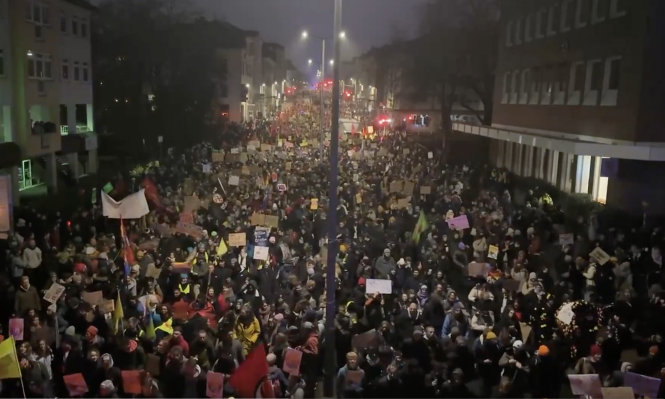 Laut dem Bündnis Widersetzen reisten Demonstranten in mehr als 200 Bussen aus ganz Deutschland an: Gewerkschafter, Studierende, Auszubildende, „migrantische Gruppen“ sowie lokale Gruppierungen. (lol)