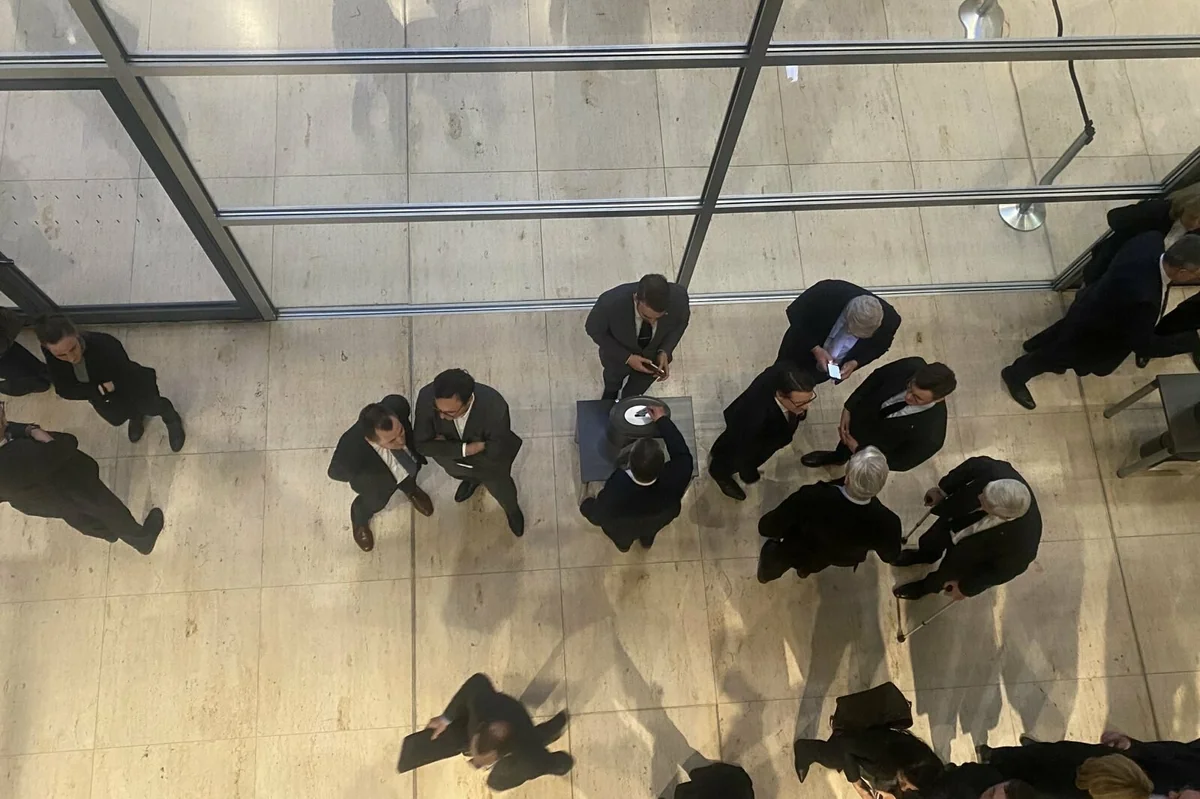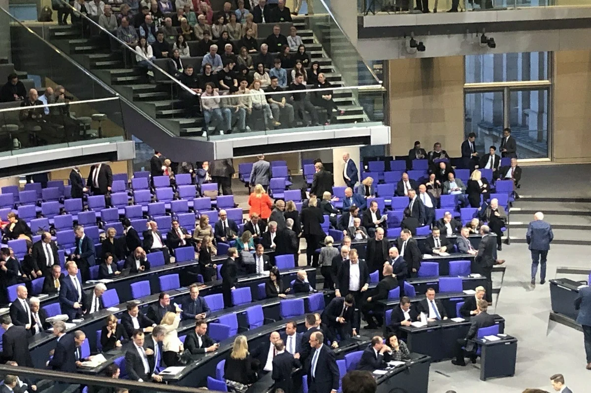 Der Saal füllt sich. Jens Spahn ist schon da, plaudert mit der Länderbank, die erste Reihe der AfD inklusive Tino Chrupalla (kaugummikauend) ist auch anwesend und schaut zu. Friedrich Merz geht grußlos vorbei, baut sich vor der Unionsbank auf. Er wirkt gut gelaunt.