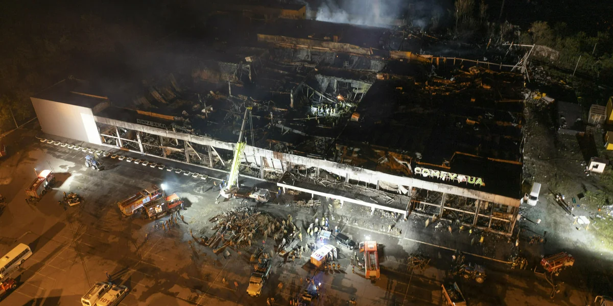 Nach Darstellung der ukrainischen Behörden wurde das Einkaufszentrum von einem russischen Langstreckenbomber mit Luft-Boden-Raketen beschossen und zerstört. Mehr als 20 Menschen seien getötet und rund 60 verletzt worden. Laut der Stadtverwaltung hatte das Management des Einkaufszentrums angeordnet, den Luftalarm zu ignorieren – weswegen das Gebäude nicht geräumt worden sei. Nun liegt es komplett in Trümmern – und angesichts von offiziell 36 Vermisstenmeldungen könnten die Opferzahlen weiter steigen.