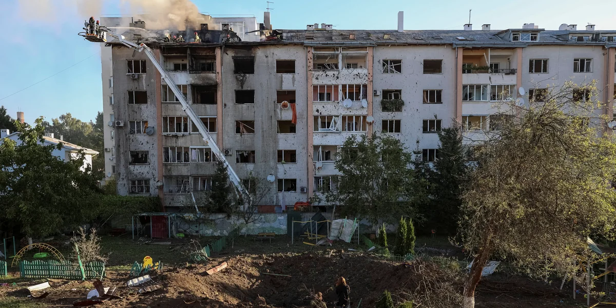 „Viele Raketen wurden abgeschossen, aber es gab auch Treffer in Lwiw“, schrieb Bürgermeister Andrij Sadowyj in Telegram. Ein brennendes Wohnhaus sei evakuiert worden. Er postete ein Video, auf dem ein Krater vor einem mehrstöckigen Gebäude zu sehen ist, in dem alle Fenster zersplittert sind.