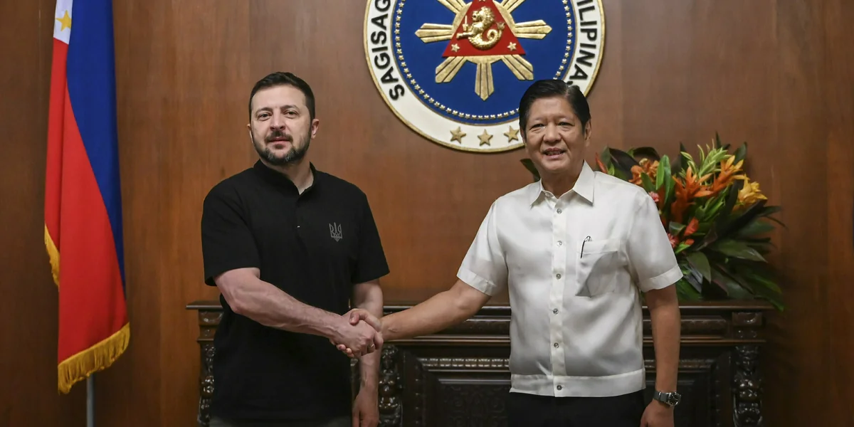 Der ukrainische Präsident Wolodymyr Selenskyj ist im Präsidentenpalast in Manila mit dem philippinischen Präsidenten Marcos Jr. zu bilateralen Gesprächen zusammengekommen. Die Ukraine werde noch in diesem Jahr eine Botschaft in Manila eröffnen, kündigt Selenskyj bei dem Treffen an. Fotos aus dem Pressepool zeigen ihn beim Eintrag ins Gästebuch im Beisein von Marcos sowie ukrainische und philippinische Regierungsvertreter beim Händeschütteln vor dem Treffen. Selenskyj reiste unmittelbar nach seiner Teilnahme an der Sicherheitskonferenz „Shangri-La Dialog“ in Singapur, seinem zweiten Besuch in Asien seit der russischen Invasion in der Ukraine im Jahr 2022, nach Manila. (rtr)