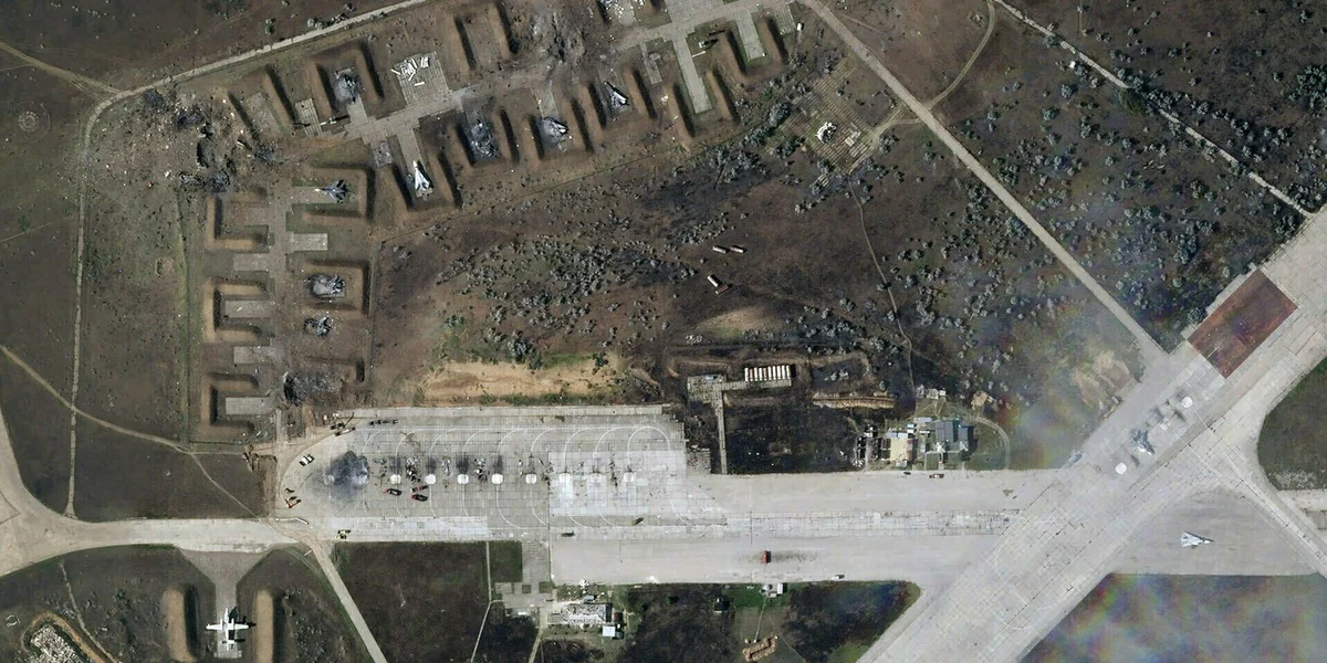 Nach Explosionen auf einer Militärbasis auf der Krim zeigen westliche Satellitenbilder, dass mindestens sieben russische Kampfflugzeuge zerstört wurden. Weitere Jets hätten offenbar Schäden davongetragen, berichtete Planet Labs PBC, ein auf Erdbeobachtung spezialisiertes US-Unternehmen. Dessen Satellitenbilder stammten von Mittwochnachmittag.