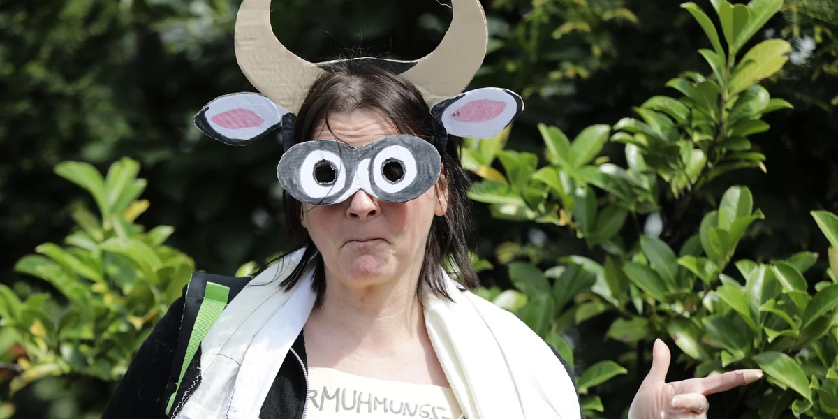 Auf einem Lauti versucht es die „Neue Treuhand“ dennoch mit einer Ansprache an die Nachbarschaft: „Lösen Sie sich von Ihrem Kapital. Verhindern Sie, dass Ihre Kinder in eine ähnlich missliche Lage wie Sie geraten.“ Umverteilung sei möglich, das habe schon die historische Treuhand nach der Wende vorgemacht. Sein ironischer Aufruf zur „freiwilligen Selbstenteignung“ wird laut beklatscht.