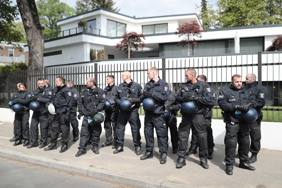 Die Auftaktkundgebung auf dem Bahnhofsvorplatz Grunewald hat denn auch Volksfestcharakter: Bands spielen, DJs legen auf, viele Teilnehmer sind verkleidet und trinken Sekt. 900 BeamtInnen hat die Polizei aufgefahren. Bei der Zugangskontrolle im Bahnhof werden Teilnehmern tatsächlich Sticker abgenommen. Die prächtigste Villa am Platz wird mit Polizeigittern geschützt.