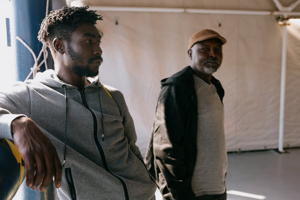 Was die europäische Repression für die Geretteten bedeutet, zeigt das Beispiel des Sudaners Fatih Abdallah. Er gehört zur zweiten Gruppe, die die „Sea-Watch 5“ etwa zwölf Stunden nach der ersten Rettung in der maltesischen Such- und Rettungszone aufliest. Diesmal hatte Italien die zweite Aktion genehmigt, sie lag praktisch auf dem Weg. Abdallah hat ein rundes Gesicht und Augen mit Lachfalten. Er trägt eine Schiebermütze, die meisten Stoppeln seines Barts sind grau. „Einer der anderen hat mir erzählt, dass er bereits 14-mal versucht hat zu fliehen“, sagt Abdallah, während die Menschen um ihn herum Reis mit Linsencurry von ihren Tellern löffeln. Bei ihm sei es erst der zweite Versuch, damit ist er besser dran.