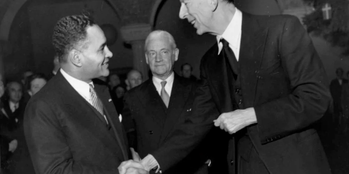 In Harvard hatte er promoviert, in Afrika zu Kolonialpolitik geforscht und für die UN hatte er das Abkommen verhandelt, das 1949 den Krieg zwischen Israel und seinen arabischen Nachbarstaaten beendete. Ralph Bunche war 1950 der erste Schwarze, der den Nobelpreis für Frieden erhielt.