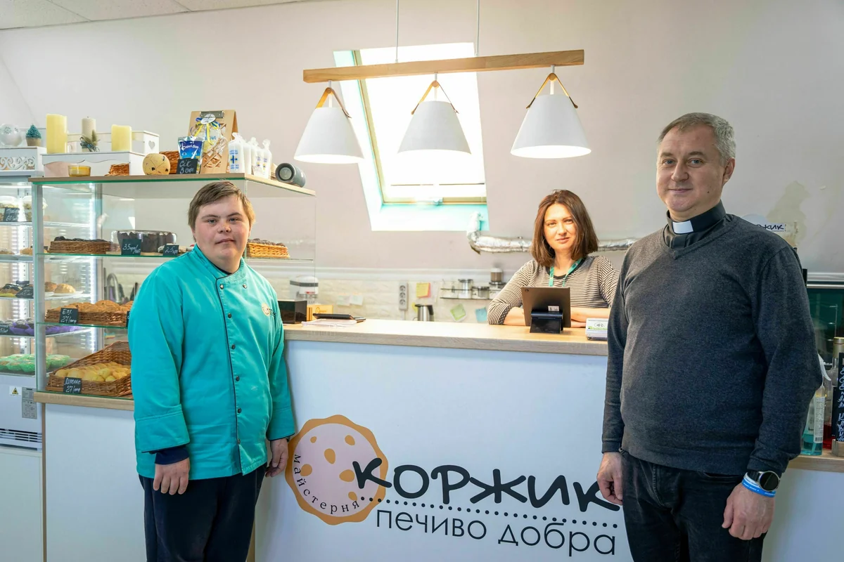 Pfarrer Witali beginnt darüber nachzudenken, wie er Mykyta helfen könnte. So entsteht die Idee einer inklusiven Bäckerei, in der sein Schützling arbeiten und auch andere begeistern kann. Die Caritas, Stifter, lokale Unternehmen und Freunde der Gemeinde unterstützen das Projekt. Die Bäckerei bekommt den Namen „Korshik“ (Fladen). Doch im Februar 2022 ist vorerst Schluss, Russlands umfänglicher Angriffskrieg gegen die Ukraine beginnt.
