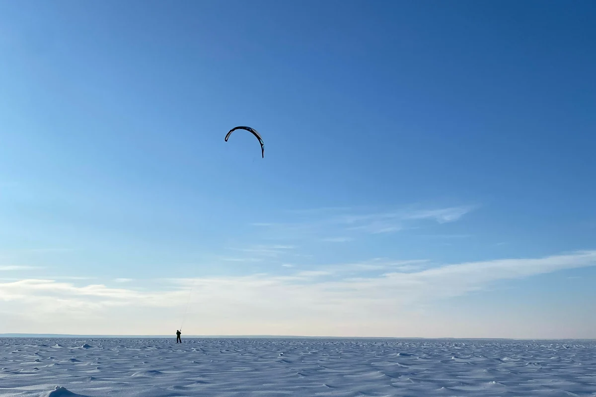 Das Kyjiwer Meer ist ein Stausee – nur 60 Kilometer von der ukrainischen Hauptstadt entfernt. Dieses Jahr gibt es hier wirklich Eis und Schnee, darum ist der See zugefroren und hat sich in eine endlose weiße Fläche verwandelt, fast wie in der Antarktis. In den sozialen Medien haben die Kyjiwer das bereits zum neuen Fotospot erkoren. Und auch wir wollten uns ein bisschen davon inspirieren lassen.