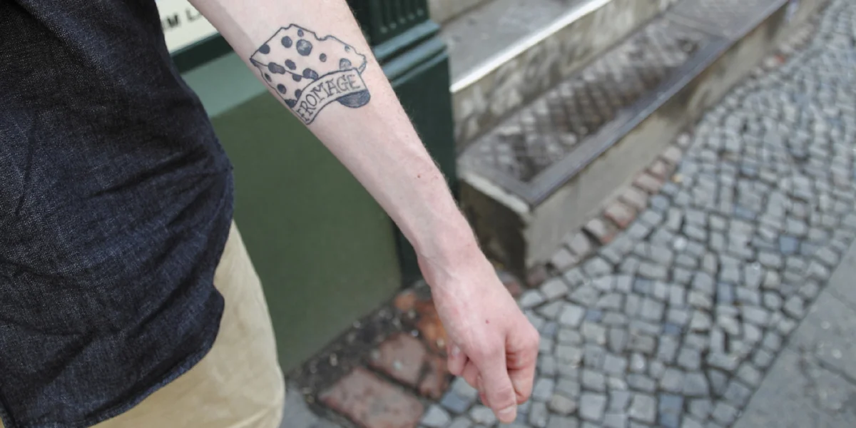 Warum er sich die Sau hat stechen lassen, will er lieber nicht verraten. Aber er spricht über sein zweites Tattoo: Auf dem Unterarm trägt er ein großes Stück Käse mit fast noch größeren Löchern. „Ist doch lustig“, sagt Perlskog, der beruflich Käse verkauft, und grinst voller Überzeugung.