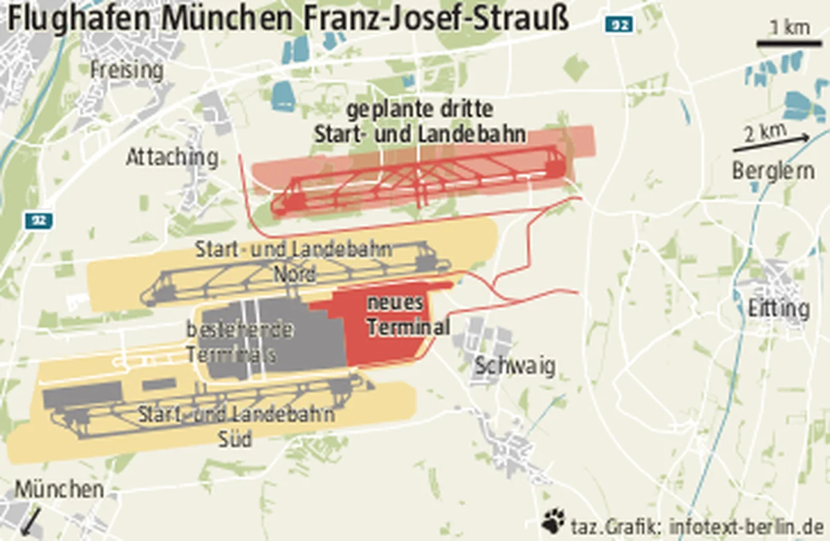 Während Freistaat und der Betreiber FMG den 25. Flughafengeburtstag feiern, haben die Anwohner eine Botschaft ins Feld geschrieben. Wer von Osten anfliegt, kann sie lesen – in zwölf Meter großen, orangefarbenen Lettern: No 3. Runway. Am 17. Mai, dem Flughafengeburtstag, werden sie zudem eine Mahnwache vor der Allerheiligen-Hofkirche in der Münchner Residenz abhalten, während gleichzeitig drinnen der Flughafen gepriesen wird.
