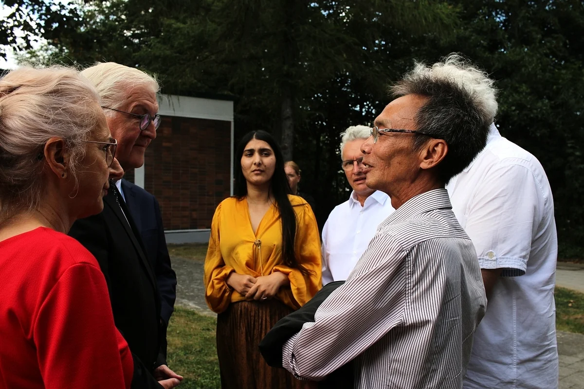 Am Donnerstag steht sie vor dem Sonnenblumenhaus, gemeinsam mit Nguyen Do Thinh, der sich damals aus dem Wohnheim rettete, Romani Rose, dem Vorsitzenden des Zentralrats Deutscher Sinti und Roma und Bundespräsident Frank-Walter Steinmeier (SPD). Der begegnet den Opfern mit Respekt, sucht das persönliche Gespräch auch mit Izabela Tiberiade. Für ihren Vater bittet sie um ein Foto.
