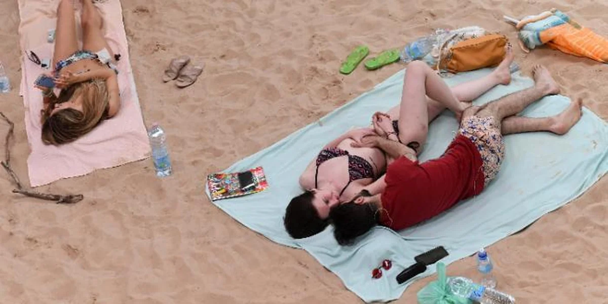 Genau wie die Perspektive: Vom ersten Stock einer Lagerhalle blickt man auf das Geschehen herab wie auf ein Tableau vivant. Menschen jeglicher Couleur fläzen sich an einem künstlichen Strand, dösen und singen. Ein Seniorenpaar macht sich Sorgen wegen Hautkrebs. Eine Frau beschwert sich mit schriller Stimme über Hundekot und Plastikmüll. Eine Mutter schwärmt von den Fernreisen ihres Kindes. Die Strandbesucher*innen singen von den kleinen und großen Dramen menschlichen Daseins, von wegen Vulkanausbrüchen gecancelten Flügen, zu warmen Weihnachten, veralgten Stränden und dem Artensterben.