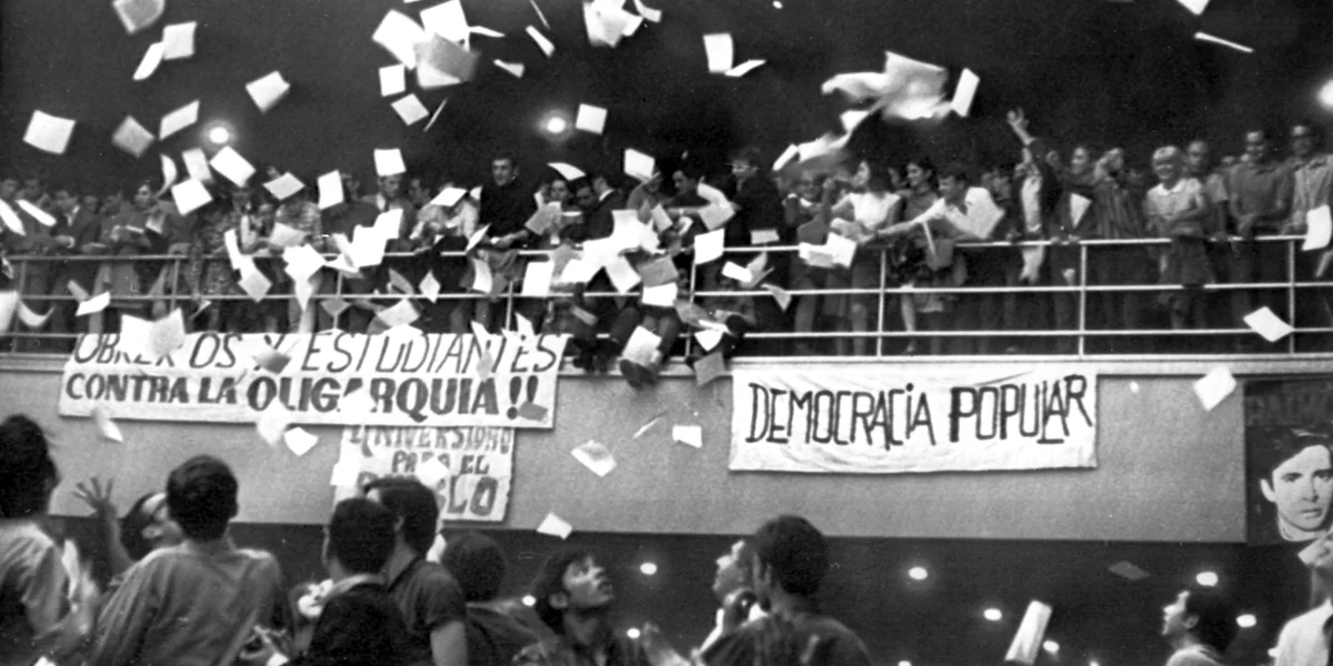 Raimón tritt im riesigen Lichthof des Gebäudes auf. Die Studenten drängen sich, auch auf den Treppen und Galerien. An den Brüstungen hängen Transparente „für Volksdemokratie“, „gegen die Oligarchie“, in „Solidarität mit Vietnam“. Ein Demonstrationszug nach dem Konzert wird von der berittenen Polizei zusammengeknüppelt.