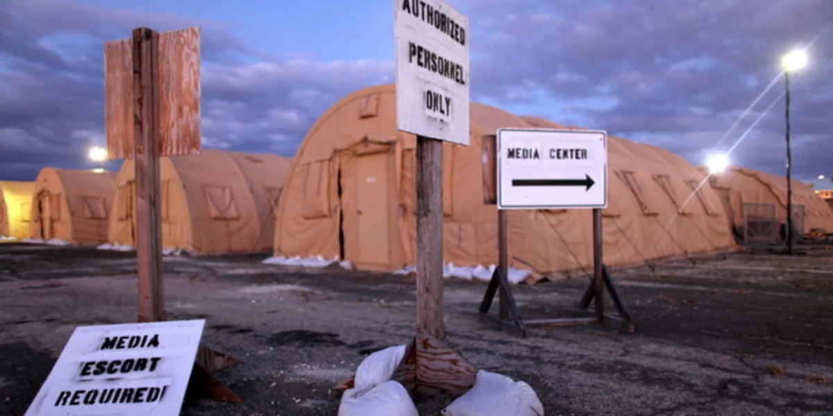 Damit nichts über die Ermittlungsmethoden der USA – darunter die gegen alle Angeklagten angewandte „Wasserfolter“ – nach außen dringt, filtert ein Geheimdienstmitarbeiter jedes im Gerichtssaal gesprochene Wort. Per Knopfdruck kann er den Ton ausschalten. Das Publikum – und die Journalisten – im Gerichtssaal hören die komplette Verhandlung 40 Sekunden zeitversetzt.