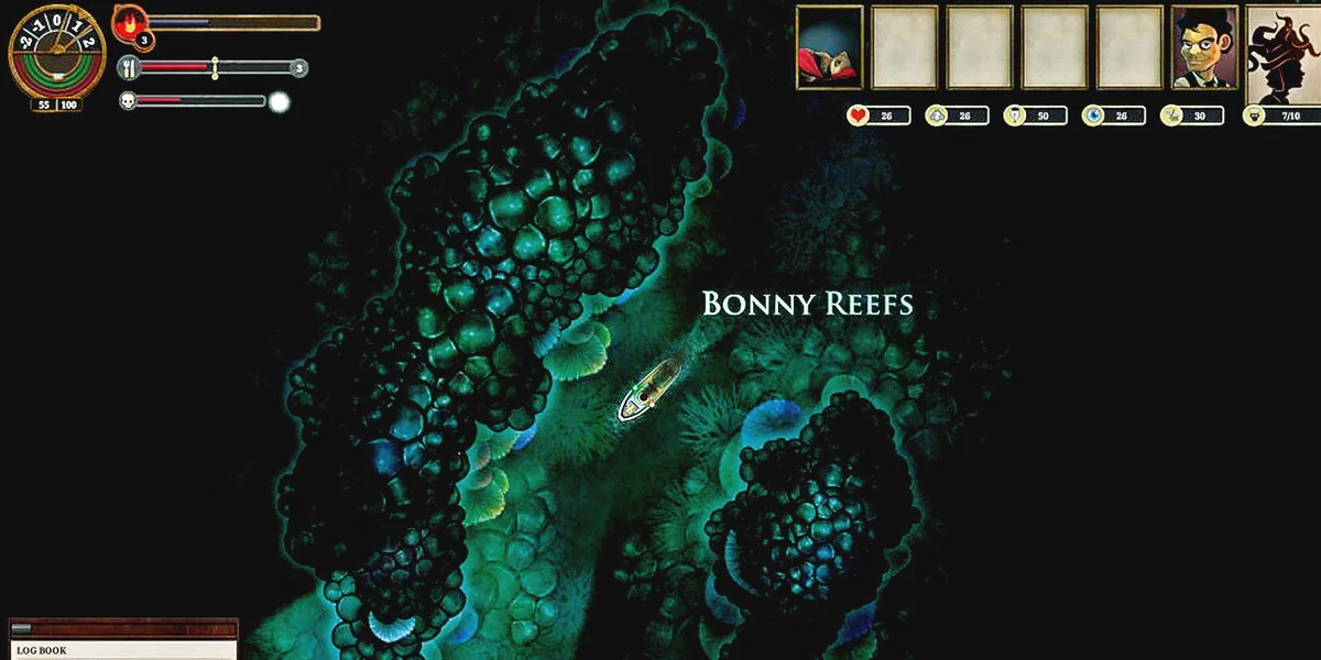 Einfach ist das keineswegs, denn man ist als Schiffseigner abhängig von der Menge an stetig schwindenden Ressourcen wie dem Brennstoff für die Dampfmaschinen oder den Nahrungsvorräten sowie der Währung „Echos“. So kann man etwa leidlich lohnenswert einen Mumienkult verfallenen Sektenanhänger („Tomb-Colonist“) – nette Lovecraft-Anspielung – zum gewünschten Zielhafen gen Norden verschiffen, muss aber arg auf lebendige Eisberge aufpassen, die dem eigenen Kahn bedrohlich nahe kommen, während einem Monsterkrabben am Heck hängen.