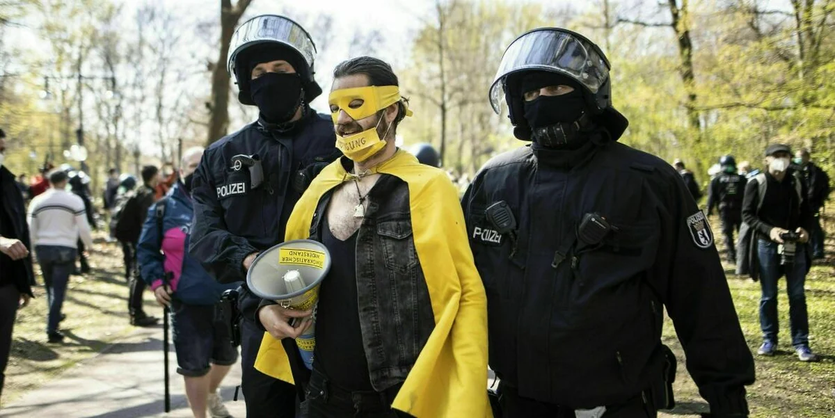 Gegen 10.30 Uhr, eine halbe Stunde danach, droht die Polizei den Demonstrant*innen „aufgrund Ihres Fehlverhaltens“ bereits mit der Auflösung. Mehr als 2.000 Beamt*innen sind im Einsatz, viele streifen durch die Menge und sprechen Menschen ohne Maske an, einige werden abgeführt. Gleichzeitig erweitert sich die Versammlungsfläche sukzessive vom Brandenburger Tor bis zur Siegessäule, um Mindestabstände zu ermöglichen. Laut der Polizei haben sich 8.000 Menschen den Protesten angeschlossen.