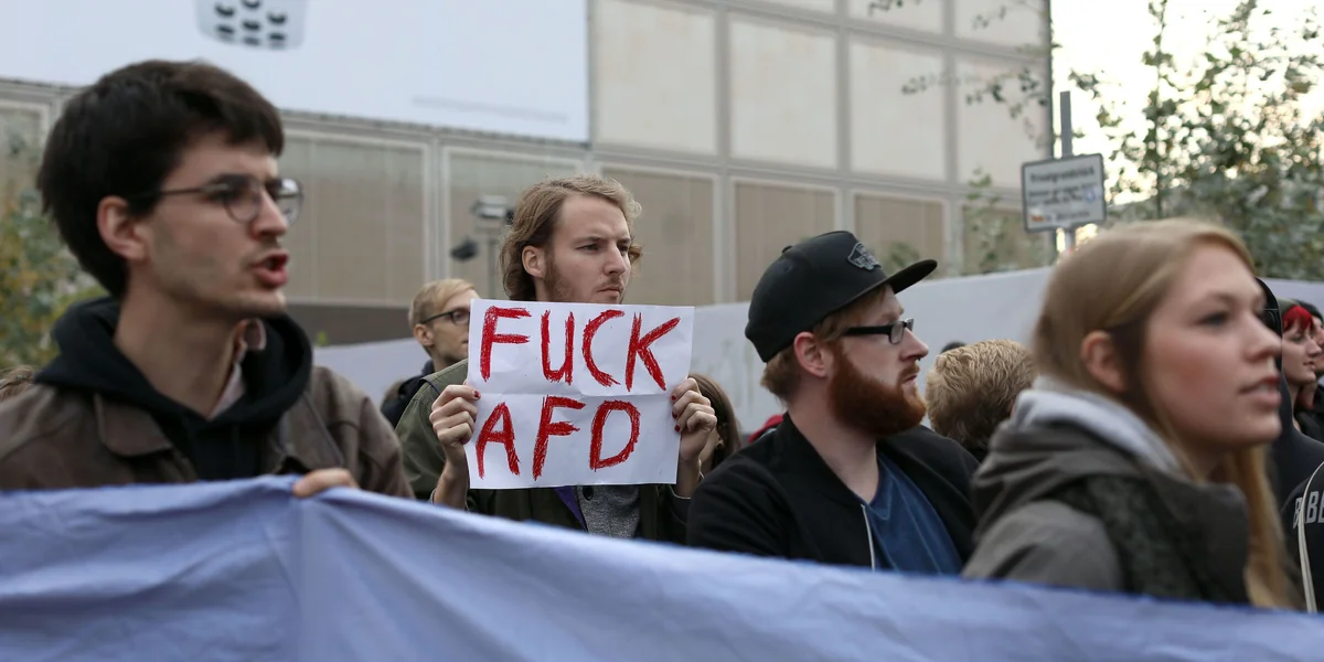 Alptraum für AfD-Ohrfeigen-Männer: AfD-Gegner*innen bei friedlicher Meinungsäußerung Foto: Christian Mang / reuters