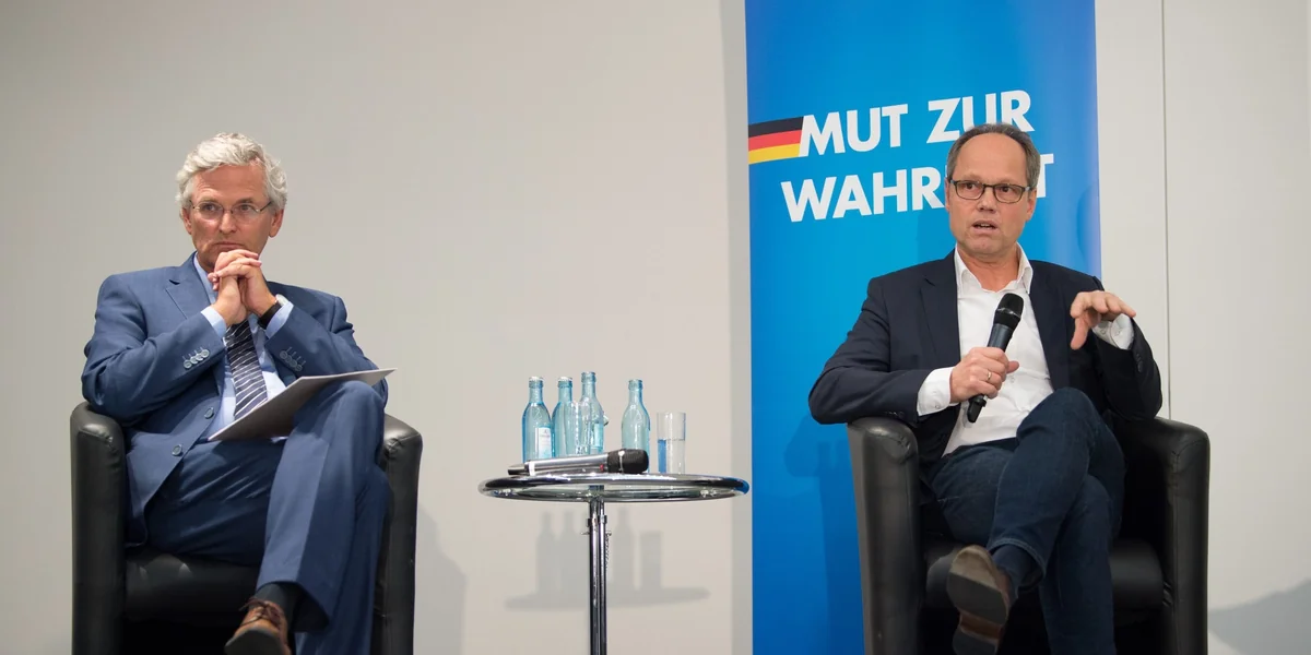 „Medien und Meinung“ war dieser Diskussionsabend über die Rolle der Öffentlich-Rechtlichen Medien überschrieben. Die ersten Statements von AfD-Seite, darunter vom ehemaligen Bild am Sonntag-Vizechef Nicolaus Fest, unterstellten, dass statt strikter Neutralität Meinungen transportiert, gar volkspädagogische Absichten verfolgt würden. Und die gingen zu Lasten der AfD. „Verkantet“ nannte Fest das Verhältnis. Moderator Andreas Lombard sah den Journalismus „tendenziell links“ und damit im Widerspruch zu den Mehrheitsverhältnissen in der Bevölkerung.