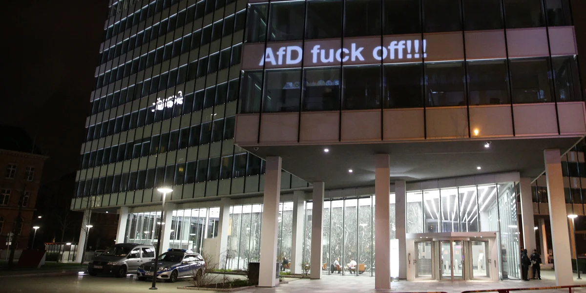 HAMBURG taz | An der Elbe tobte der Sturm „Felix“ durch die Straßen. Im Souterrain des Emporio Hochhaus bekam die „Alternative für Deutschland“ (AfD) ebenfalls harten Gegenwind zu spüren. „Fuck of AfD“ hatten Gegendemonstranten an das Gebäude in der Hamburger Innenstadt projiziert. Im Saal unterbrach Hans-Olaf Henkel aufgrund des Protests seiner Rede: „Das stört mich“, sagte er, diese Störer wüssten nicht „was sie tun“. Sie seien keine Täter, sondern Verführte.