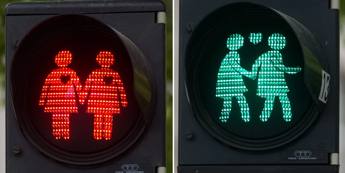 Dem war ein gemeinsamer Antrag von Linken und Grünen für die Einführung gleichgeschlechtlicher Ampelpaare vorausgegangen. Das Vorbild des Projekts: Wien, wo im Mai Dutzende Ampeln mit homo-, bi- und heterosexuellen Pärchen, Hand in Hand gehend, aufgestellt worden waren.