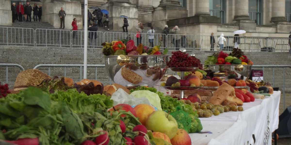 Vor dem Bundestag haben sich deshalb am Freitag Organisationen zusammengetan, um ein Bankett gegen die Verschwendung zu veranstalten. Das Wetter spielt nicht wirklich mit: es regnet in Strömen – aber die riesige Tafel wird allem Regen zum Trotz mit Kerzen und Silberplateaus bedeckt. Und vor allem mit bunten Backwaren, Früchten und Gemüsesorten. Beim Anblick der Tafel stutzen die Passanten: Diese Lebensmittel sind eigentlich für die Mülltonne bestimmt. Einige Früchte sind etwas angeschlagen, mancher Brotlaib schon ein bisschen trocken, die meisten von ihnen jedoch in einwandfrei frischem Zustand. Die sogenannten Essenretter der Organisation Foodsharing haben sie bei Supermärkten abgeholt, die diese Lebensmittel nicht mehr verkaufen und sie sonst wegwerfen würden.