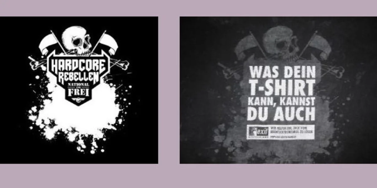 Nach dem Waschen verschwindet nämlich der Slogan mit einen Totenkopf – und stattdessen erscheint das Logo der Aussteigerinitiative "EXIT-Deutschland" und der Tipp: "Was dein T-Shirt kann, kannst du auch. Wir helfen Dir, Dich vom Rechtsextremismus zu lösen".