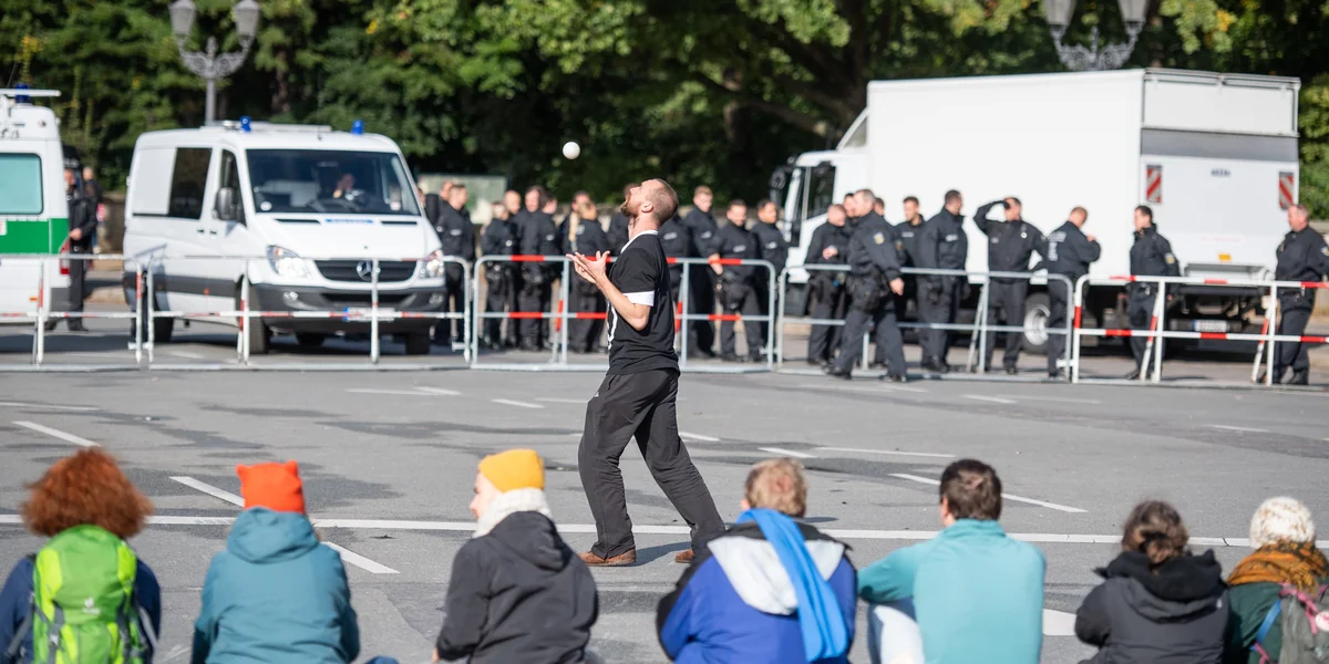 Auch das XR-Credo der absoluten Gewaltfreiheit mag aus der Perspektive der reinen linken Lehre kritikwürdig – da staatstragend – sein. Aber wer gesehen hat, wie sich grauhaarige Omas Seite an Seite mit TeenagerInnen von der Straße tragen lassen, wer gehört hat, wie PassantInnen mit AktivistInnen über ihre Zukunftsängste und -sorgen sprechen, kann sich des Eindrucks nicht erwehren, dass es genau diese Gewaltfreiheit ist, die den Protest anschlussfähig macht für Menschen, die bislang nicht oder wenig über ihren Tellerrand geschaut haben.