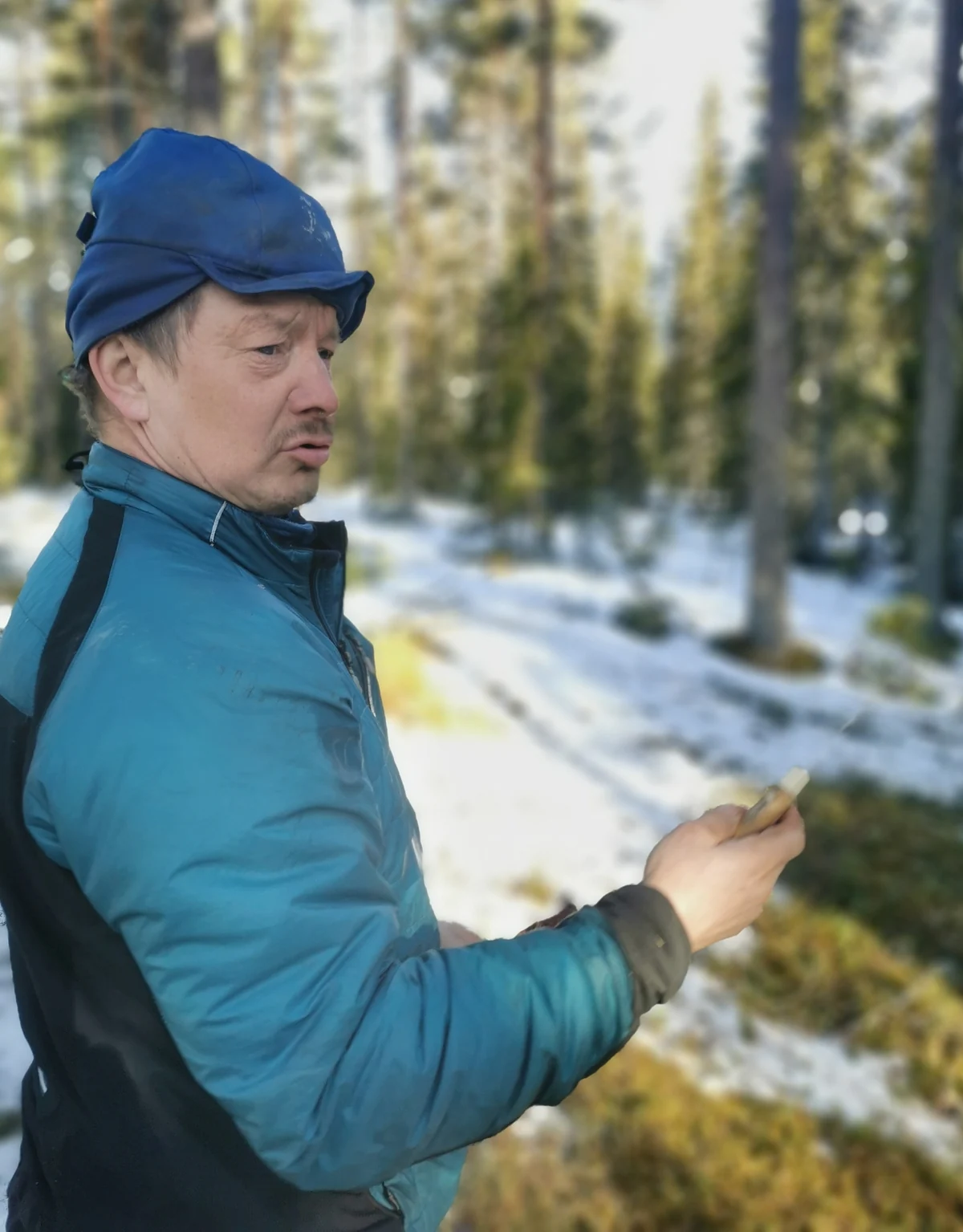 Er nimmt einen verdorrten Ast vom Waldboden: Wenn ein Baum lange genug stehe, sterben einzelne Äste weiter oben ab und fallen beim nächsten Wintersturm mitsamt ihrem eingebauten Rentierfutter auf den Boden. Dafür braucht der Wald Zeit. Aber diese Art von Zeit habe kein Konzern, meint er. „Deren Zukunftsvision ist der nächste Quartalsbericht.“