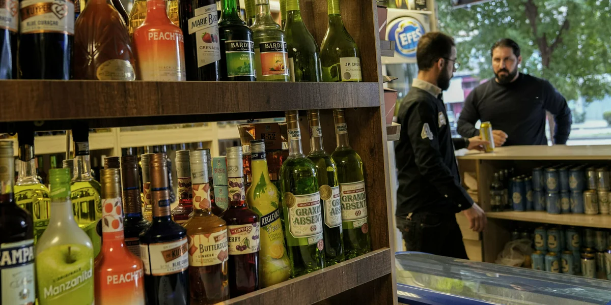 Unter meterhohen Leuchtbuchstaben – Glenfiddich, ein schottischer Whiskey – und vor mit dunkler Folie abgeklebten Glastüren sitzt, gelangweilt am Smartphone spielend, ein Mann. Wer den Laden im zentralen Bagdader Stadtteil Jarmouk betreten will, muss ihm den Inhalt seiner Tasche zeigen, die Männer tastet er kurz ab. Innen, Reihe um Reihe, importierter und lokaler Alkohol: Wein aus dem Libanon, Wodka aus Schweden, Whiskey aus den USA, Bier aus dem norddeutschen Flensburg, Arrak aus der Autonomen Region Kurdistan im Nordirak.