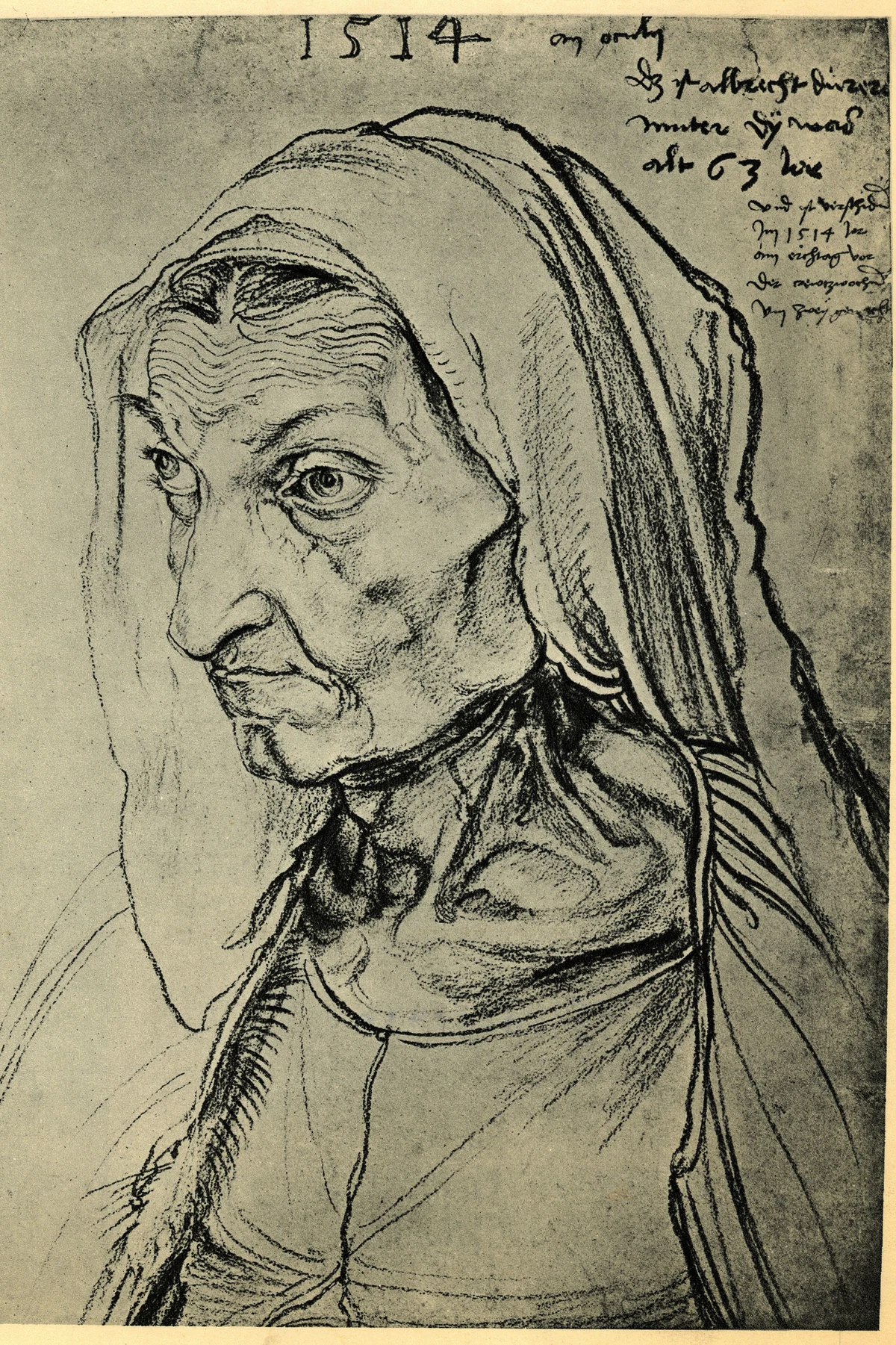 Dürers Porträt der eigenen Mutter von 1514 gilt als erstes realistisches Bild eines alten Menschen. Es zeigt, wie sehr das hohe Alter lange Zeit vor allem als Lebensphase des Leidens und Gebrechens galt. Wer das Erwachsenenalter überlebte, hatte vor allem gelitten. So schrieb Dürer: „Diese meine fromme Mutter hat 18 Kinder tragen und erzogen, hat oft Pestilenz gehabt, viel andrer schwerer und merklicher Krankheit, hat große Armut gelitten, Verspottung, Verachtung, höhnische Wort, Schrecken und große Widerwärtigkeit.“