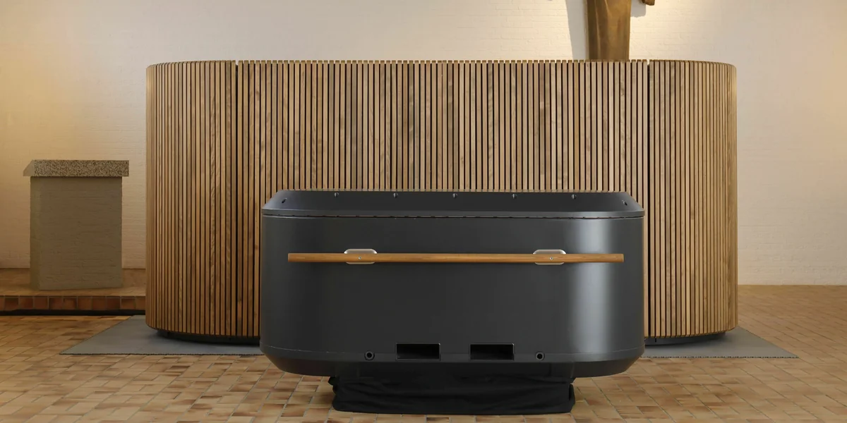 In Mölln hat das Unternehmen eine Friedhofskapelle zum europaweit ersten Alvarium – lateinisch für Bienenstock – umfunktioniert. In der Kapelle steht ein Kasten aus Holz und Metall mit einer großen Pforte, auch als „Wabe“ bezeichnet. In der Wabe wiederum steht der „Kokon“, eine Metalltruhe mit abgerundeten Enden und je einer Holzstange links und rechts. In diesem temporären Sarg wird der Leichnam auf ein Gemisch aus natürlichen Materialien wie Stroh, Heu, Blumen und Aktivkohle gebettet, erklärt Geschäftsführer Pablo Metz. So seien hier bereits vier Reerdigungen durchgeführt worden, die fünfte ist seit Anfang Dezember im Gange.