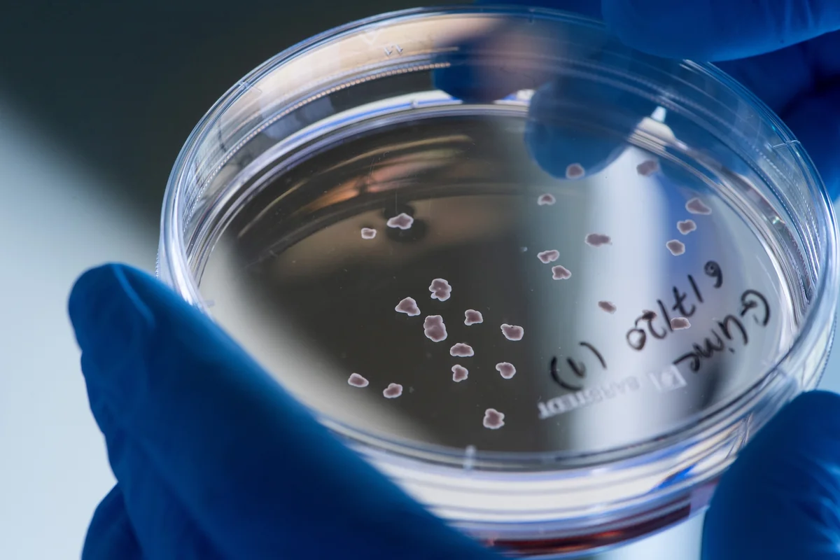 Die Zellen kommen aus Biobanken oder werden von Patient*innen gespendet. Wofür das Material verwendet werden darf, wird in einer Vereinbarung geregelt. Das Organoid, das aus den gespendeten Zellen entsteht, hat womöglich nichts mit ihrer Ausgangsfunktion zu tun. Damit aus Zellen des Blutes oder der Haut Gehirngewebe oder Darmepithel wird, müssen die Zellen umprogrammiert werden. Zunächst in das Stadium einer embryonalen Stammzelle. Man könnte das als die Alles-ist-möglich-Phase beschreiben. Dafür fügt man bestimmte Faktoren im Medium hinzu, die diese Prozesse lenken. Später geben die Forschenden andere Faktoren hinzu, die der Umgebung eines Gewebes entsprechen und drücken dadurch die Zellen in diese Entwicklungsrichtung. „Im Gehirn zum Beispiel beginnen die Zellen sich dann zu den verschiedenen Nervenzellen zu differenzieren und selbstständig zu organisieren.“ Damit bilden sich die Anfänge des Organoids.