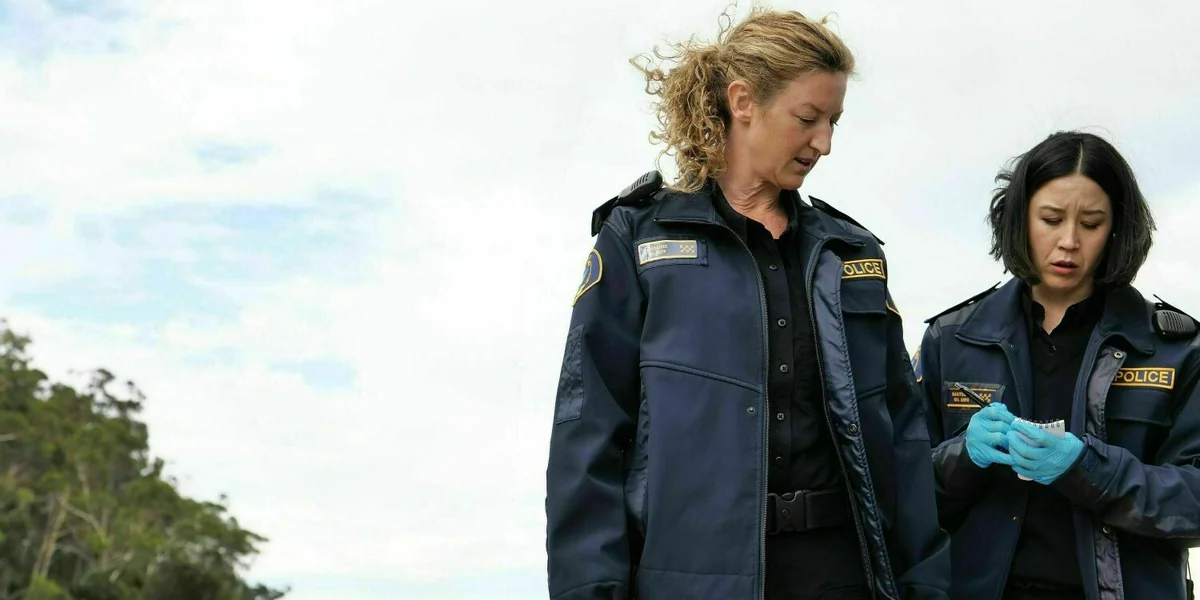 „Deadloch“ führt uns nach Tasmanien, wo sich in einem Kaff an der Küste namens, hihi, „Deadloch“, diverse Morde ereignen, die erheblichen Ermittlungsstress bei den zuständigen Polizistinnen auslösen. Den Toten fehlt jeweils die Zunge, was ein amüsantes Kontrastdetail ist, plappern die Menschen in der Ortschaft doch unentwegt. Senior Sergeant Dulcie Collins (Kate Box), Senior Investigator Eddie Redcliff (Madeline Sami) und Junior Constable Abby (Nina Oyama) werden mit den Fällen betraut, und bilden ein Trio der Extraklasse, weil ihre Charakterunterschiede zu einem permanenten Kompromisszwang führen.