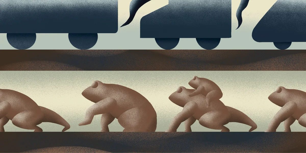 Die Kröten wandern wieder. Das erkennt man an den flachen grünen Kunststoffbarrieren, die irgendwann im Februar an den Rändern der zumeist viel befahrenen Hauptstraßen auftauchen, die die Orte verbinden. Und an den Schildern mit Krötensymbol drauf. Mit dem „großen Ansturm ist ab Ende Februar zu rechnen“, schreibt der Nabu Niedersachsen über die jährliche Amphibiensaison, was irgendwie weltläufiger klingt als: Kröten hüpfen über Felder und durch Wälder zu ihren Laichgründen.