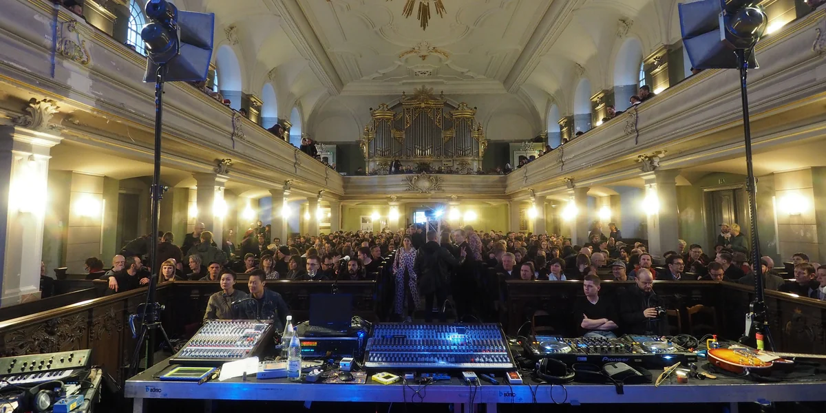 Die britische Avantgarde-Band Nurse With Wound gibt ein Konzert, unter der Kirchenkuppel ist später experimentelle Elektronik und Krach zu hören, das Publikum im vollen Saal wiegt auf Kirchenbänken mit.