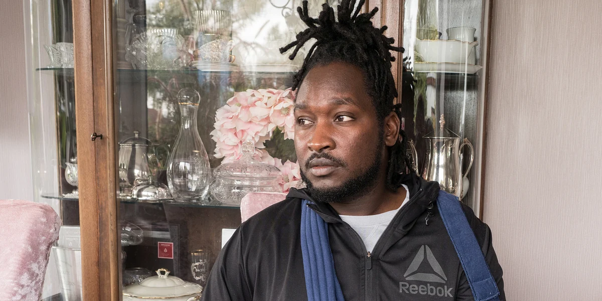 Vier Wochen nach dem Angriff sitzt Nelson Mbugu in seinem Wohnzimmer. Er ist 39 Jahre alt, lebt seit 2017 in Deutschland, ist mit einer Deutschen verheiratet. Den linken Arm trägt er in einer Schlaufe, noch immer nimmt er starke Schmerzmittel. Mbugu spricht leise, mischt beim Reden Deutsch und Englisch. Was am 5. September passiert ist, kann er immer noch nicht fassen.