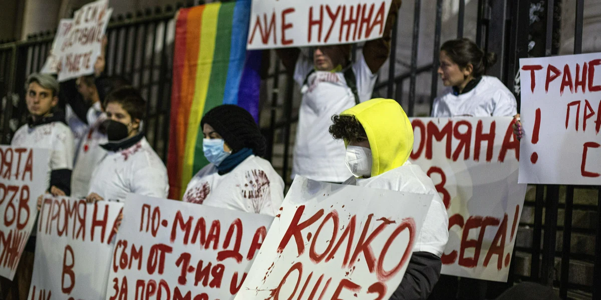 Unter dem Motto „Nein zum Hass“ versammelten sich am Montagabend mehrere Gruppen zu einer Protestkundgebung vor dem Justizpalast im Zentrum Sofias. Die Demonstrant*innen skandierten Slogans wie „Faschismus ist keine Meinung, sondern ein Verbrechen!“ und forderten, dass Verbrechen aus homo- oder transphoben Motiven endlich ins Strafgesetzbuch aufgenommen werden müssten.