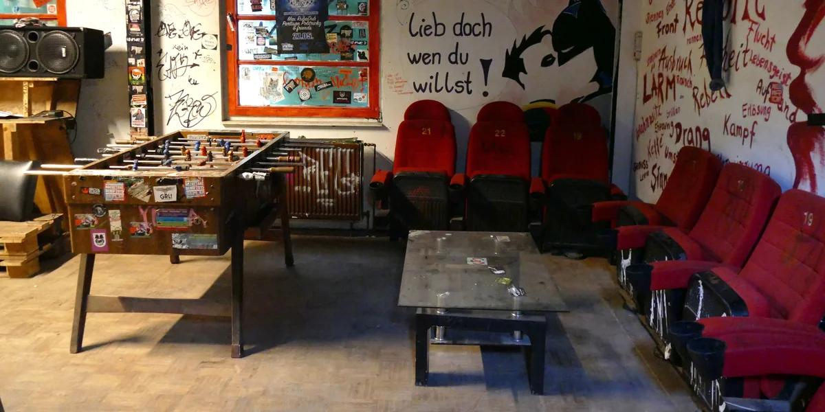 Jede Stadt sollte mindestens eins haben: Ein autonomes Kulturzentrum. Vielleicht ist es ein selbstverwaltetes Jugendzentrum, ein ehemaliges oder seit Jahrzehnten besetztes Haus. Hauptsache die Sofas sind durchgesessen und die Wände bemalt. Man trifft sich dort zu Antifa- und Antira- und Fantifa-Cafés. Es gibt Beratungsgruppen für Stress mit dem Amt (egal welches), FLTI Events, 'nen Kicker und billig Bier, weil Recht auf Rausch. Sie beherbergen den örtlichen Infoladen und ’ne Fahrradwerkstatt.