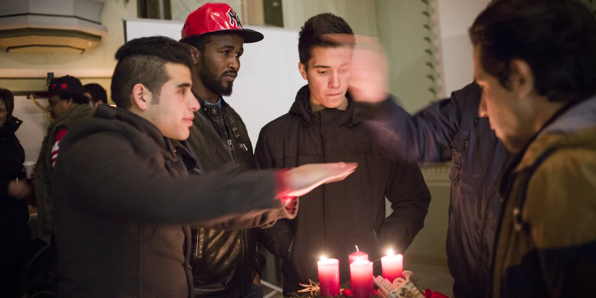 Die Deutschstunde von Sabine Richter muss ein Happening gewesen sein. Beschwingt kommen die fünf jungen Syrer die Treppe herauf, Richter mittendrin. Sie singen und tänzeln. Sabine Richter blickt irritiert. Sollte es tatsächlich das Märchen vom Rotkäppchen sein, das die Männer so elektrisiert hat? Der kleine Pulk hat das Büro der Sozialarbeiterin Jördis Poppe erreicht. Schon werden die Rollen verteilt. Wer spielt die Großmutter? Wer das Rotkäppchen?