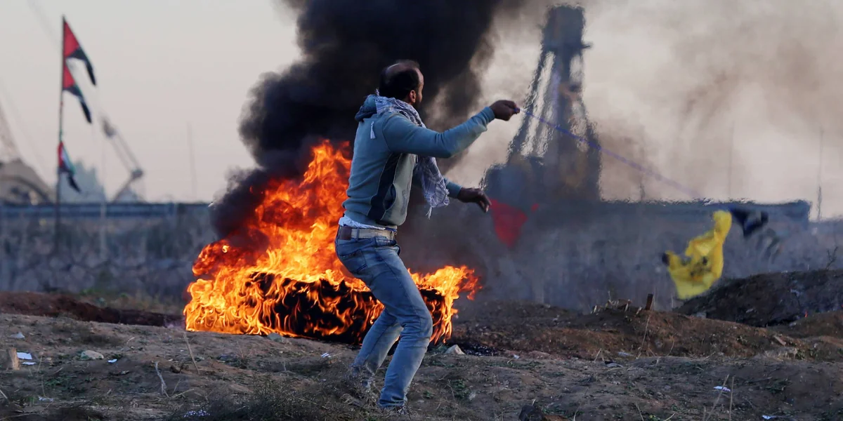 Auseinandersetzung zwischen Palästinensern und Israels Armee am Grenzzaun im Gazastreifen Foto: imago/ZUMApress