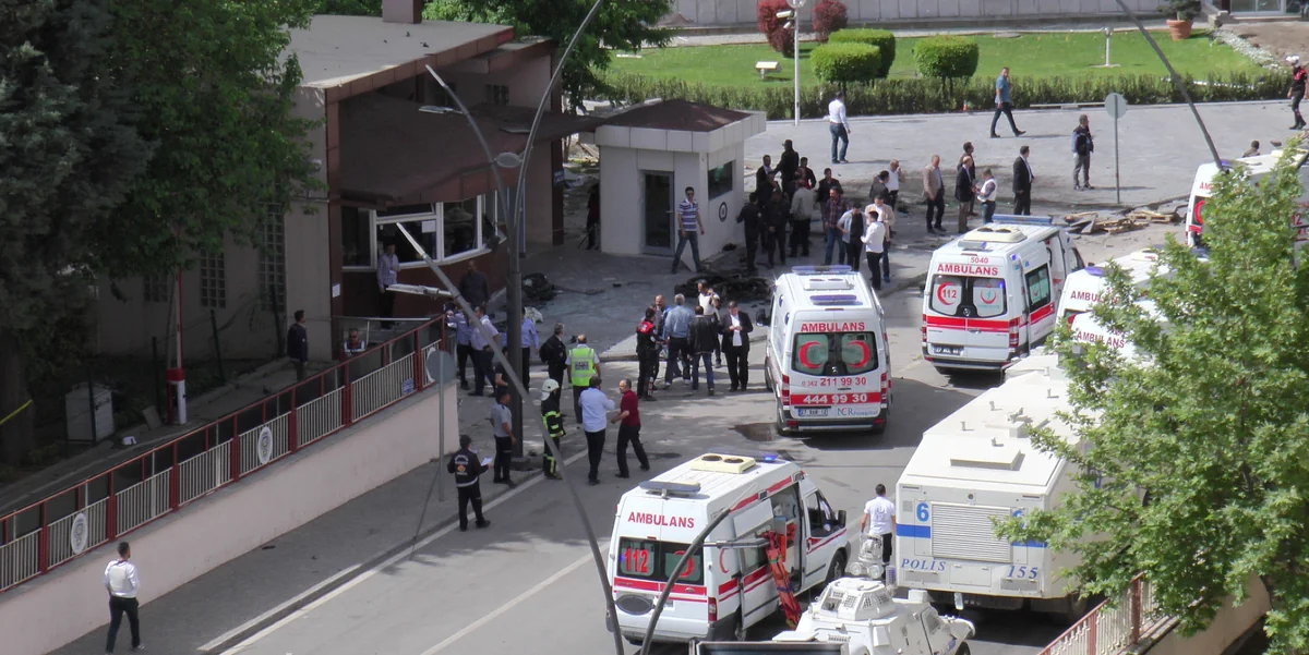 dpa | Gut eine Woche nach dem Besuch von Bundeskanzlerin Angela Merkel in der südosttürkischen Stadt Gaziantep ist auf das dortige Polizei-Hauptquartier ein Autobomben-Anschlag verübt worden. Die staatliche Nachrichtenagentur Anadolu meldete unter Berufung auf den Gouverneur, ein Polizist sei bei der Detonation am Morgen des Maifeiertages an der Einfahrt zu dem Gebäude getötet worden. 13 Menschen seien verletzt worden, unter ihnen neun Polizisten.