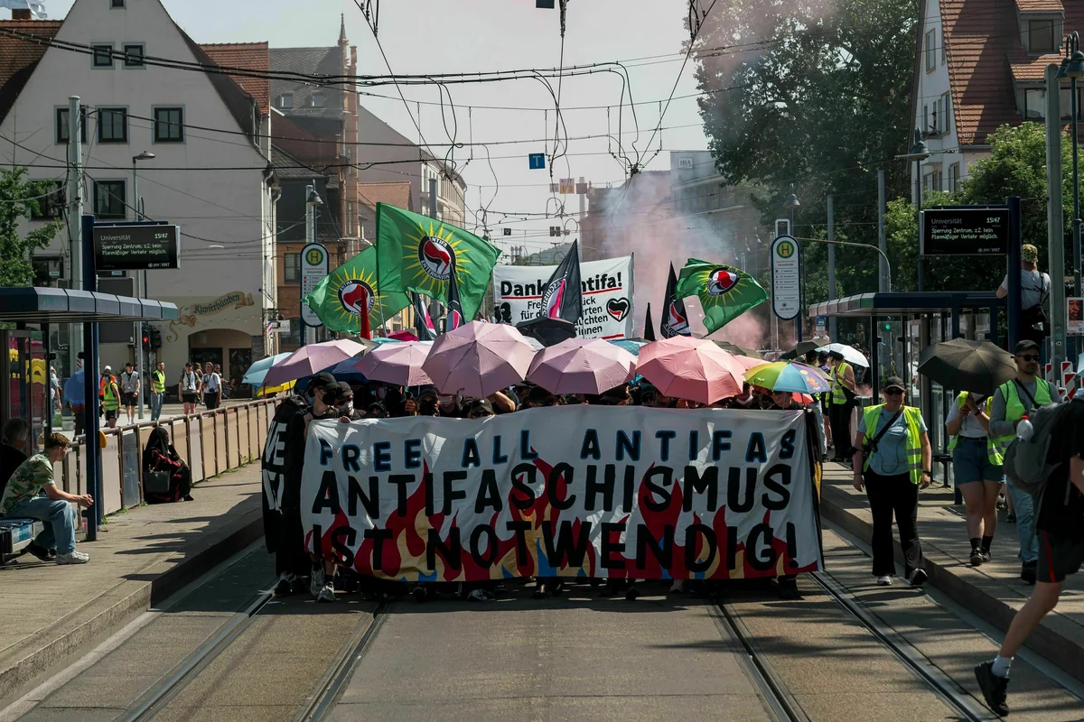 Mehrere tausend Antifa-Aktivist:innen demonstrierten am Samstag in Jena. Unter dem Slogan „Jetzt erst recht – Antifaschismus ist notwendig! Freiheit für alle Antifaschist*innen“ hatte ein breites Bündnis antifaschistischer Gruppen mobilisiert. Die Veranstaltenden sprachen von fast 10.000 Teilnehmenden, die Polizei meldete etwa 5.000 Demonstrierende. Die Demonstration richtete sich gegen die Kriminalisierung von Antifaschismus, gegen rechte Gewalttaten und gegen die erstarkende extreme Rechte in Deutschland und weltweit.