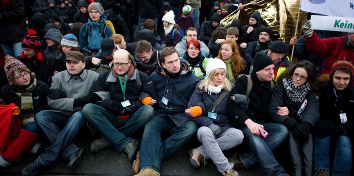 Die Proteste 2011 in Dresden blieben nicht immer so gewaltfrei wie hier. Bild: dpa
