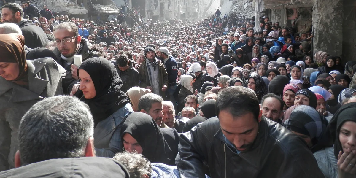 Alle Opfer und Umstehenden waren ganz normale Zivilist:innen, die nur selten ihre Häuser verlassen haben, weil sie wussten, das ist gefährlich. Sie mussten aber, weil sie Hunger gelitten haben. Es müssen furchtbare Zustände gewesen sein in Jarmuk. Eine Person hat erzählt, dass sie ihre Katze gegessen hat, weil sie so Hunger hatte. Die Menschen hatten sich an keinerlei Konflikten beteiligt. Sie standen aus Verzweiflung für Lebensmittel an.