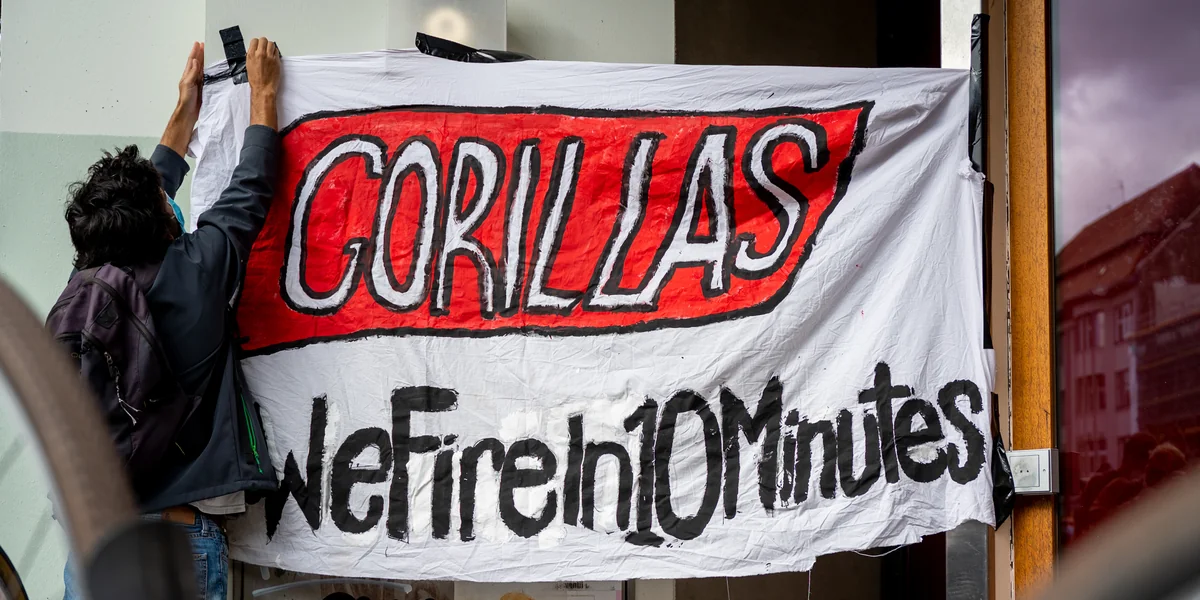 Der Lebensmittel-Kurierdienst Gorillas schließt einen Standort und kündigt 87 Mitarbeiter*innen, darunter auch drei Mitglieder des Betriebsrats.